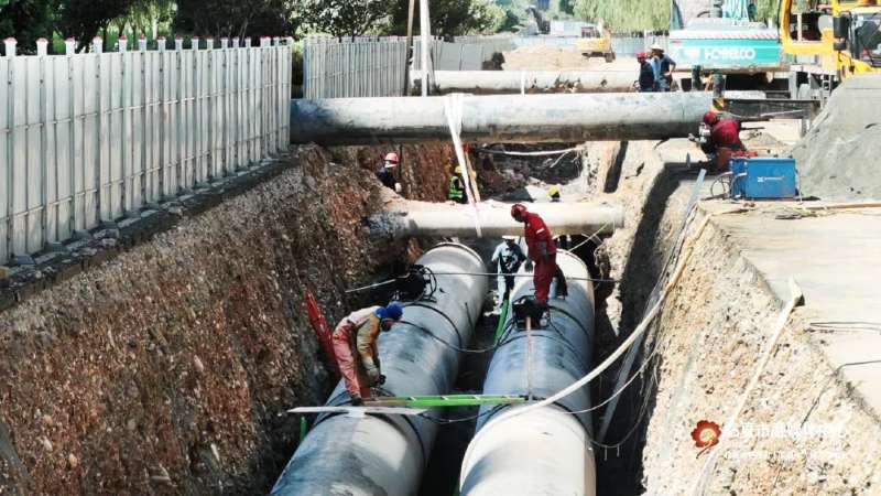 近日,記者來到該工程現(xiàn)場時(shí),起重機(jī)正將一根根供熱管道吊起,精準(zhǔn)地放進(jìn)溝槽內(nèi);一旁的工作人員有條不紊地將一節(jié)節(jié)供熱管道鋪設(shè)、焊接,現(xiàn)場焊花閃爍、機(jī)聲隆隆,挖掘機(jī)和土方車來來回回,進(jìn)行溝槽開挖、渣土運(yùn)送。